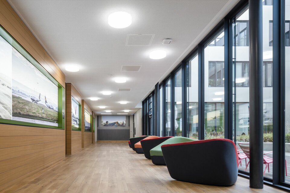 Das SkyPort am Flughafen Stuttgart ist ein Bürogebäude der neuesten Generation: außen charakteristisch, einladend und zukunftsorientiert – innen weitläufig, offen und flexibel. Die individuelle Raumaufteilung macht die Arbeitswelten ideal für jede Art von Nutzer, egal ob kreative Agentur oder internationales Unternehmen. Diverse Gruppen- und Einzelbüros, Rückzugsbereiche, informelle Treffpunkte sowie Seminar- und Schulungsräume sorgen für eine Kombination aus Kommunikation und Konzentration. Das viergeschossige Foyer mit Sitzgelegenheit und Empfangsbereich bildet das Herzstück des Gebäudes und lädt sowohl Mitarbeiter als auch Kunden und Partner zum Betreten ein. Dank hoher Energieeffizienz, nachhaltiger Bauweise und einem umweltschonenden Nutzungskonzept wurde das Gebäude in der Stuttgarter Airport City bereits in der Planungsphase mit DGNB Gold ausgezeichnet.