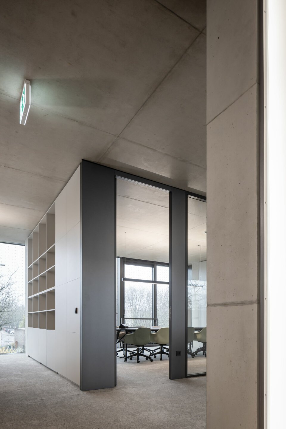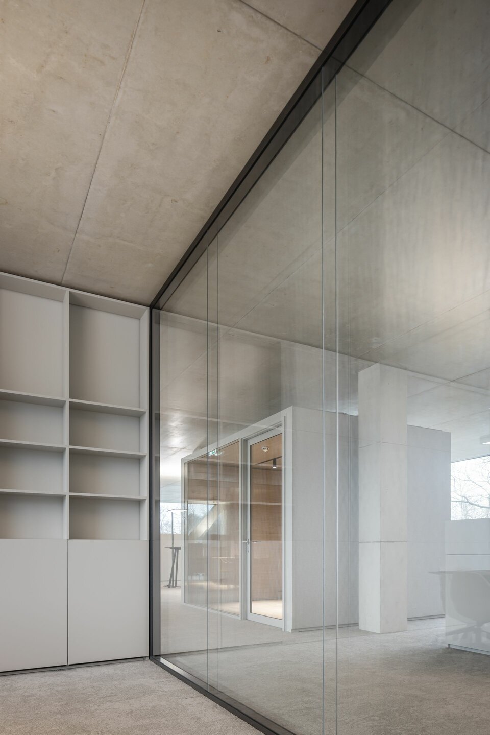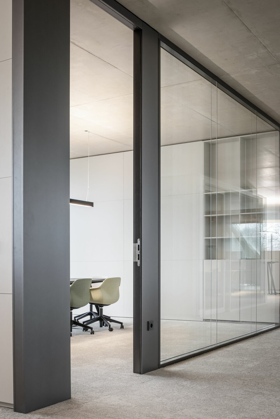 Mit flexiblen, modular aufgebauten Cubes bietet Lindner die ideale Ergänzung in den sonst offenen Raumflächen. Die Raum-in-Raum Systeme ermöglichen ungestörte Gespräche und konzentriertes Arbeiten bei optimalen Raumklima und können individuellen Bedürfnissen angepasst werden. Bei Änderungen und Aufteilungen können die Cubes auch im Raum versetzt oder komplett rückgebaut und in anderen Bereichen wiederverwendet werden. Weitere Systemtrennwände aus Glas tragen mit ihrer transparenten Gestaltung dazu bei, dass das natürliche Licht bestmöglich genutzt wird und die Offenheit der Fläche erhalten bleibt. Integrierte Jalousien bieten zusätzliche Flexibilität und Privatsphäre.