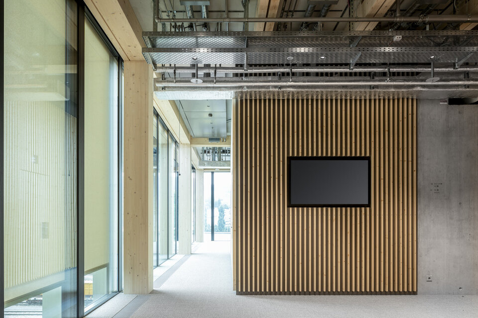 Im schweizerischen Rotkreuz entstand mit dem Suurstoffi-Areal ein Quartier mit besonderem Augenmerk auf Nachhaltigkeit. In seiner finalen Ausbaustufe wird es Raum bieten für rund 1.500 Bewohnerinnen und Bewohner, circa 2.000 Studierende und über 2.500 Arbeitsplätze. Im ersten Baufeld entstand unter anderem ein neuer Campus der Hochschule Luzern für über 1.350 Bachelor- und Master-Studierende mit den Studienschwerpunkten Informatik und Wirtschaft sowie rund 210 Mitarbeitende. Dafür belegt die Hochschule das mit 60 Metern bis dato höchste Holzhochhaus der Schweiz auf neun Etagen sowie ein angeschlossenes Nachbargebäude vollständig auf insgesamt 8 Etagen. Die Fläche von insgesamt 16.150 m² wird für verschieden Büro- und Unterrichtsräume genutzt. Neben einem Audimax und vielen kleineren Seminarräumen entstanden auch Zonen für individuelles Lernen oder Gruppenarbeiten. Außerdem bietet der Campus eine umfangreiche Bibliothek, ein großzügiges Foyer, ein Forum sowie eine Mensa. Beim Innenausbau wurde nicht nur Wert auf Nachhaltigkeit gelegt, sondern auch darauf, dass sich die Räumlichkeiten je nach Bedürfnis und Auslastung flexibel anpassen lassen.
