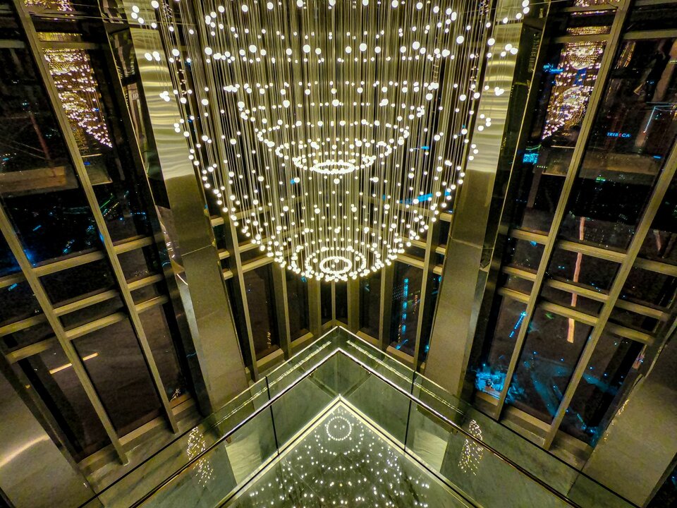 In der Sky Lobby in Etage 48 kann man dann, wieder unter Sonderdecken mit ARTline Beschichtung und Edelstahldecken, die Aussicht über die Stadt genießen.