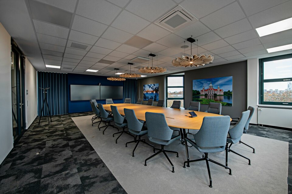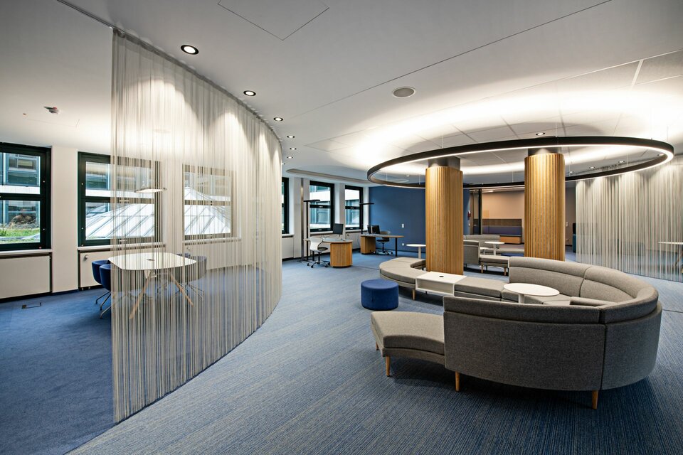 Die Lindner Group spielte bei der Realisierung der neuen Arbeitswelten eine Schlüsselrolle und lieferte zahlreiche Produkte für den Innenausbau. Systemtrennwände und spezielle Raum-In-Raum Systeme unterstützen das agile Arbeitskonzept und bieten Privatsphäre in der offenen Bürolandschaft. Die Lindner Cubes tragen darüber hinaus zu einem anpassungsfähigen Umfeld bei, während akustisch wirksame Decken- und Bodensysteme für eine konzentrierte Arbeitsatmosphäre sorgen: Denn die perforierten Deckenflächen und Lochdeckensysteme verbessern die Raumakustik erheblich und verringern Störgeräusche.