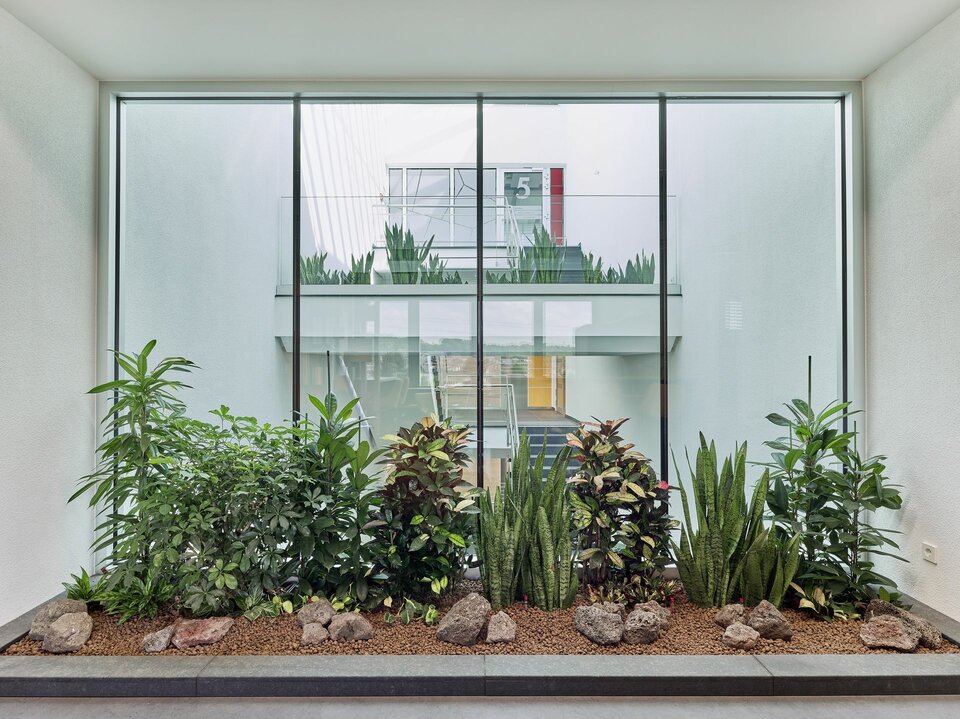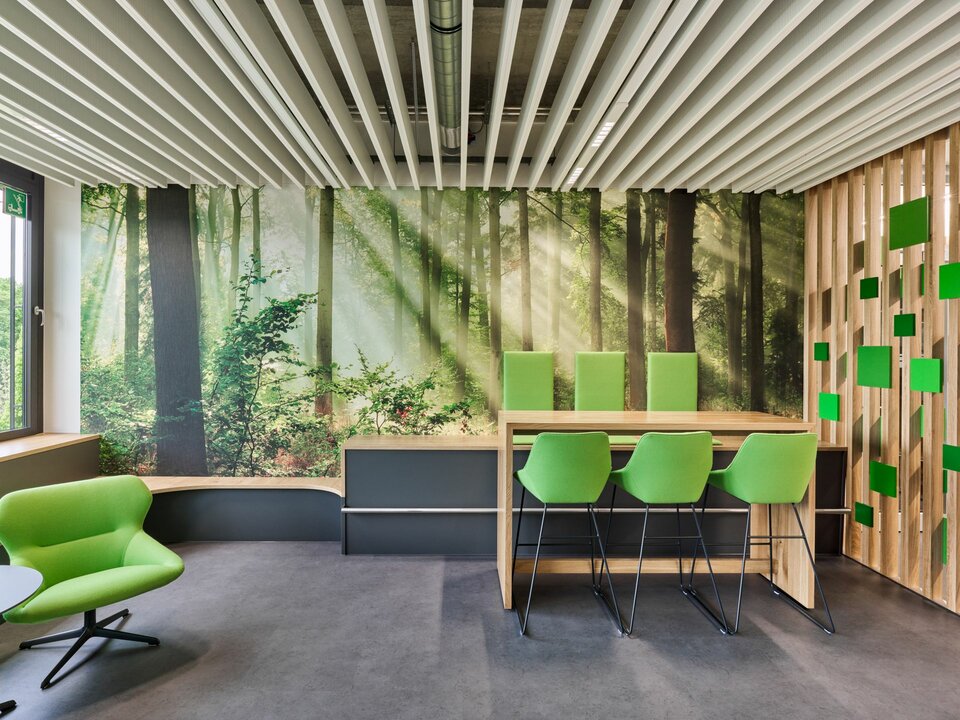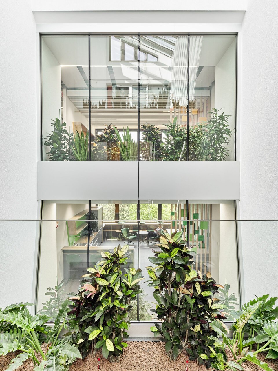 Die Lindner Group war für den Komplettausbau bzw. die Revitalisierung der Arbeitsbereiche verantwortlich. Für den Boden wählte man mit der Variante FLOOR and more® ein besonders belastbares System, das mit hohem Begehkomfort, Nichtbrennbarkeit und optimierter Akustik überzeugt. Wer den Blick nach oben richtet, entdeckt die Lamellendecke LMD sowie die Plafotherm® Heiz- und Kühldecken. Die Zuluftelemente AirBox gewährleisten darüber hinaus eine angenehme Frischluftzufuhr in den Büroräumen. Für eine elegante Raumtrennung installierte Lindner diverse Trennwandsysteme, darunter die Holztrennwand Lindner Logic 100 Timber und die Glastrennwände Lindner Life Pure 620, Lindner Life Clear und Lindner Life Stereo 125. Ein besonderes Highlight ist die in F90 ausgeführte, absturzsichere Verglasung Lindner Life Fire, welche als beeindruckende Innenfassade ausgeführt wurde. Ergänzt wurde der Innenausbau durch diverse Türelemente, Wandbekleidungen und Trockenbauwände.