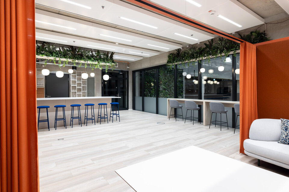 Mit dem Ausbau der neuen Büroflächen für die Veolia Umweltservice GmbH im EDGE HafenCity in Hamburg entstand ein modernes Interior Design, das die Unternehmenswerte subtil, aber wirkungsvoll widerspiegelt. Das Konzept basiert auf einer schlichten Umgebung mit klaren Linien und Sichtbetonwänden, die mit gezielten farblichen Akzenten aufgewertet wurden. Besonders das markante Orange dient als verbindendes Designelement und schafft eine inspirierende Atmosphäre.