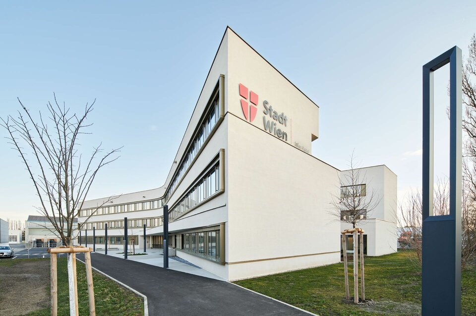 Von der neuen Wien Kanal Zentrale aus kümmern sich rund 240 Mitarbeiterinnen und Mitarbeiter um den störungsfreien Abfluss im 2.500 km langen Kanalnetz der Stadt Wien. Die Gebäudeform des Neubaus lädt zu Assoziationen zu sich kreuzenden Kanäle ein, ist aber in erster Linie der Grundstücksfläche und industriellen Umgebung geschuldet. Das Architektenteam von Pichler & Traupmann wollten hier bewusst einen Gegenpart zu den sonst frontal ausgerichteten Gebäudereihen schaffen. Zusätzlich galt hier der Anspruch, möglichst viel begrünte Freiflächen zu schaffen. Darüber hinaus zeigt sich das X als optimale Gebäudeform in Bezug auf Sichtachsen und kurze Wege, genauso wie auf Flexibilität und Reversibilität der neuen Arbeitswelten.
