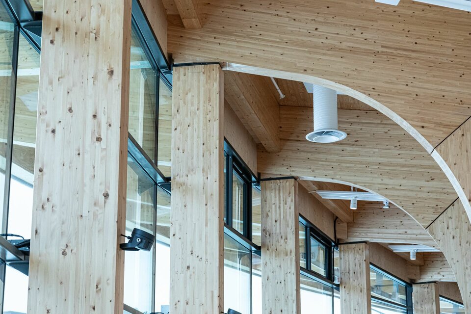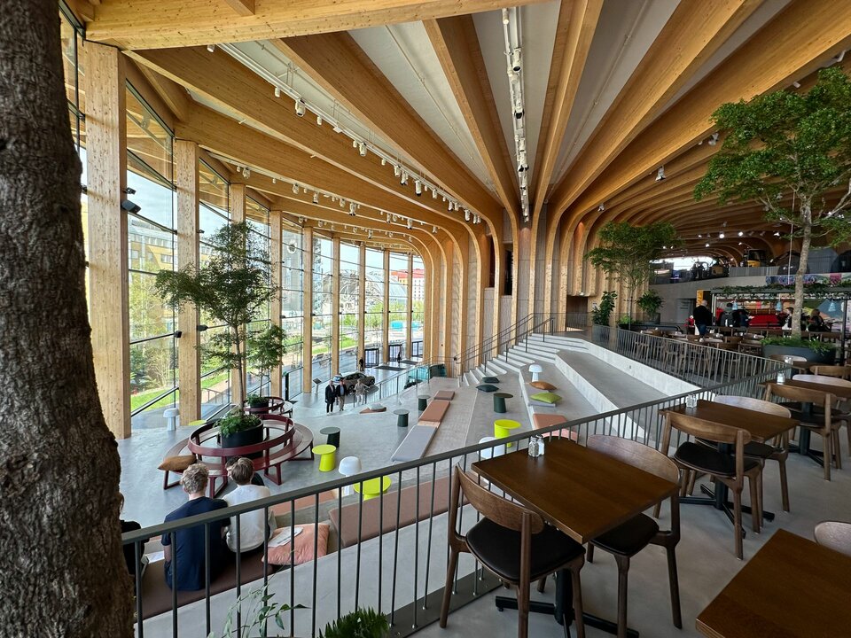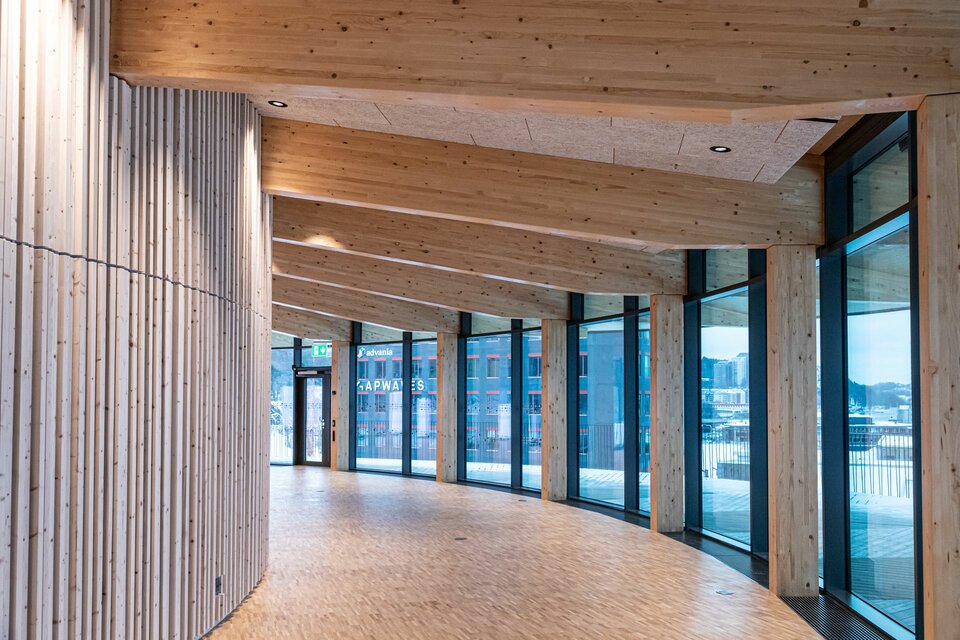 Das Erlebniszentrum "World of Volvo" ist ein neues architektonisches Wahrzeichen in Göteborg, das sich durch seine nachhaltige Holzbauweise und sein besonderes Design auszeichnet. Der größte Holzbau Skandinaviens legt dabei den Fokus auf die Minimierung der Umweltauswirkungen und erfüllt die anspruchsvollen Anforderungen der LEED Stufe Gold. Inspiriert vom schwedischen Konzept des „Allemansrätten“ – dem Grundrecht aller Bürger, jedes Grundstück frei betreten zu dürfen – lädt das kreisförmige Design des Zentrums die Besucher dazu ein, das Gebäude auf vielfältige Weise zu erkunden. Drei zentrale Baumstämme mit Wendeltreppen und Versammlungsräumen bilden dabei das Herzstück des Gebäudes und symbolisieren traditionelle Treffpunkte.