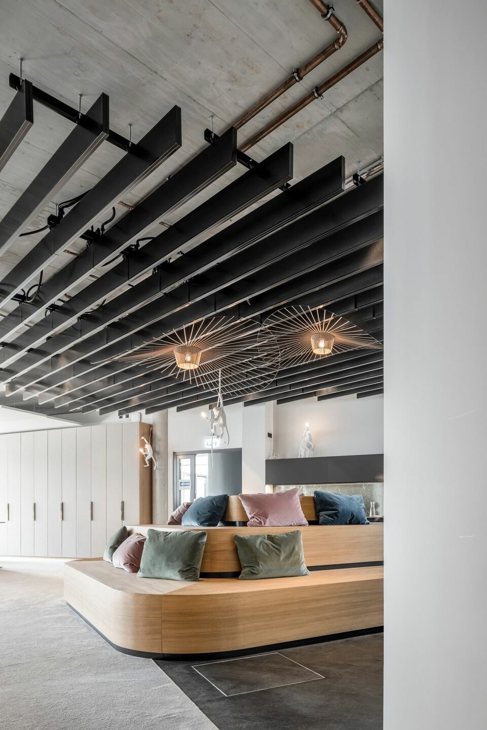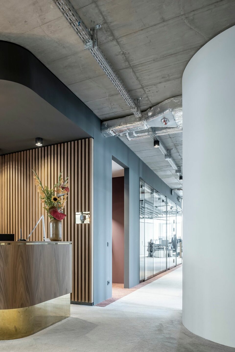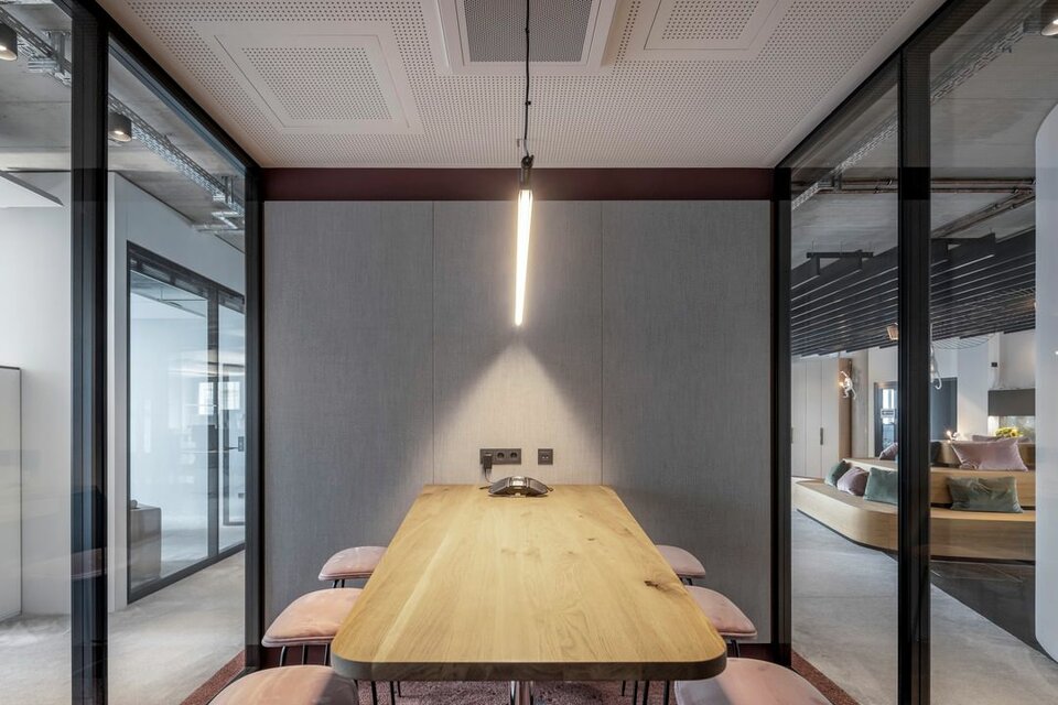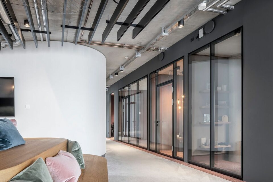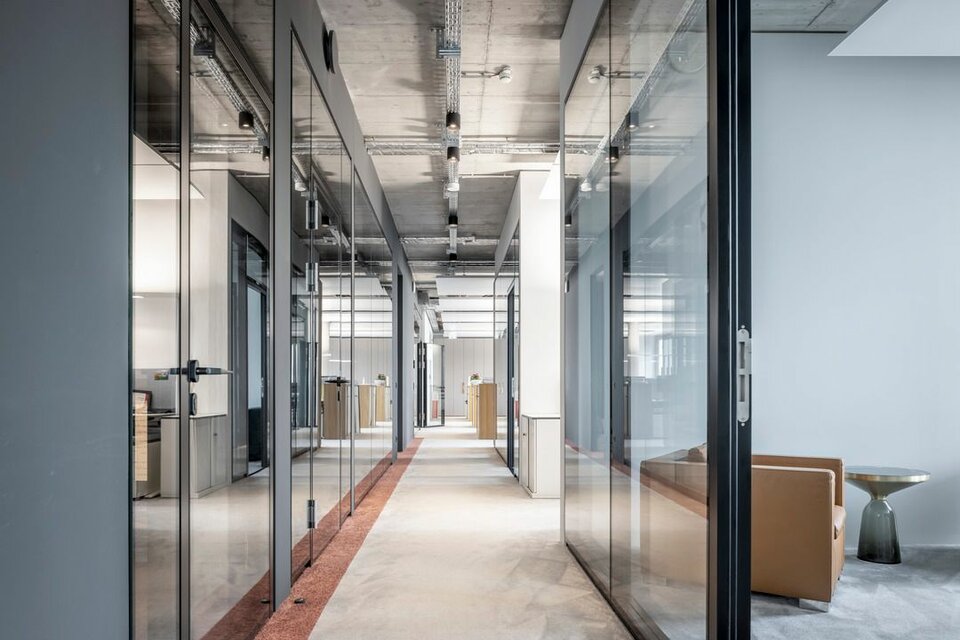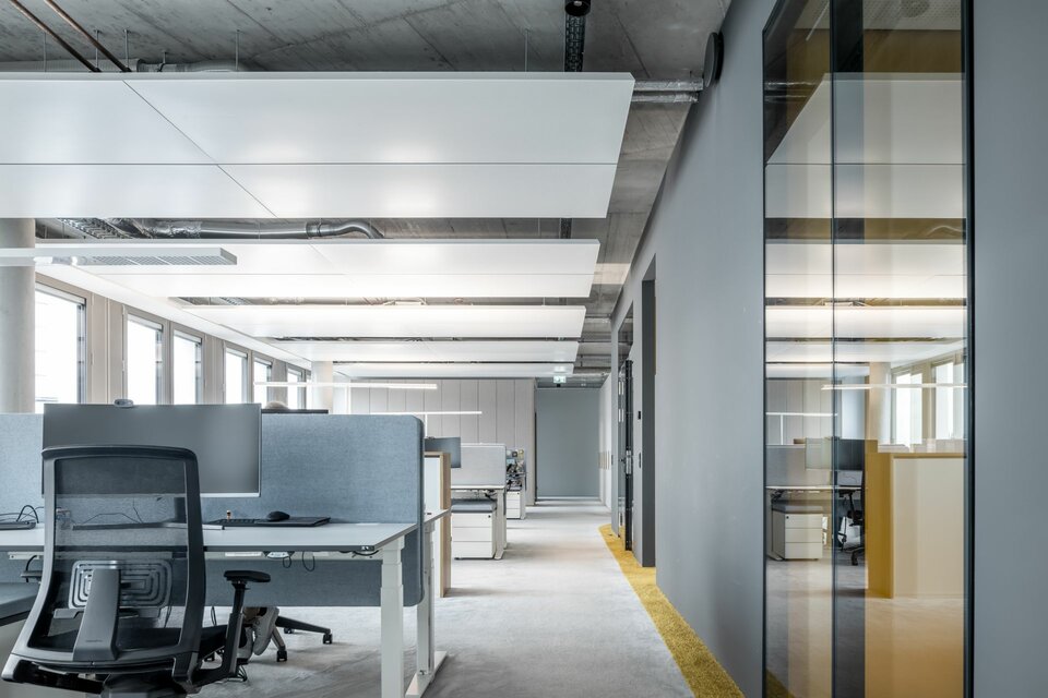 Neben den Bodensystemen NORTEC und CAVOPEX und den damit verbundenen Bodenbelagsarbeiten, wurde das Glastrennwandsystem des Typ Lindner Life und Heiz-und Kühldecken zur Ausgestaltung der Innenflächen genutzt.