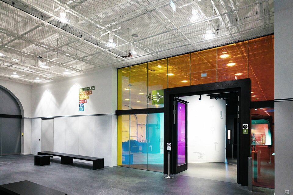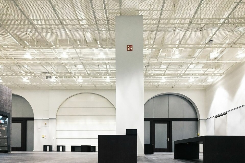 Ein wahres Highlight stellt außerdem das freistehende Raum-in-Raum System ohne Anschluss an die Deckenoberfläche in einer der Ausstellungshallen dar: Hierfür wurde eine Rohrkonstruktion mit Innenmaßen von 50 x 20 x 6 Metern installiert, welche mit den Holztrennwänden Lindner Logic Timber sowie den Glastrennwandsystemen Lindner Life Stereo ergänzt wurde. Heute dient die Halle als neuer Zugangs- und Garderobenbereich des Museums. Ein mit schwarzen Spanplatten verkleideter Ausgabetresen aus einer zehn Meter frei tragenden Alukonstruktion ergänzt die Besuchergarderobe.