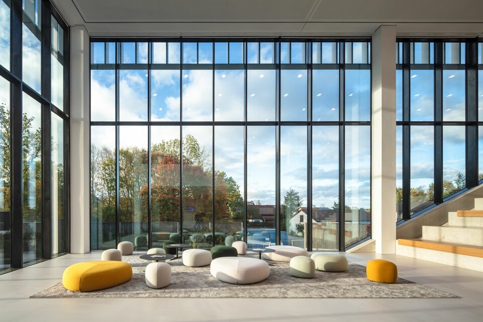 Die Fassade des Innovationszentrums ist dabei ein echter Blickfang und hebt die Bedeutung des Gebäudes noch einmal architektonisch hervor. Die Lindner Building Envelope GmbH war maßgeblich für die Planung, Produktion und Montage der hochwärmegedämmten Aluminium-Pfosten-Riegel-Fassade verantwortlich.