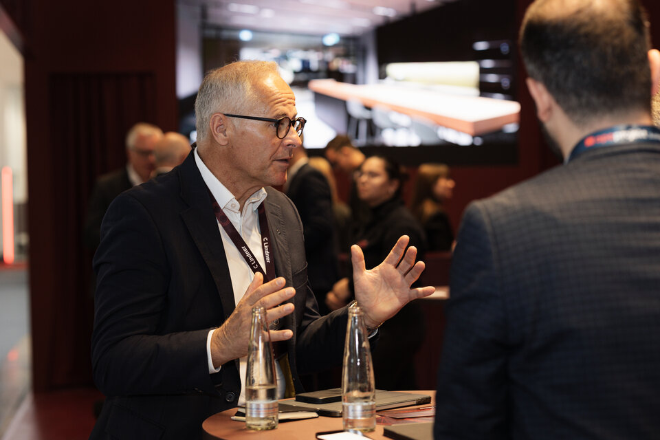 Ein zentraler Bestandteil des Messeauftritts war der Austausch über zirkuläres Bauen und nachhaltige Materialstrategien. Am 6. Oktober lud Madaster zum exklusiven Madaster-Get-Together am Stand der Lindner Group ein. Gemeinsam wurde über Werterhalt, Materialdaten und kreislauffähige Planung diskutiert – ein wertvoller Austausch zwischen Bestands- und Neukunden sowie Fachleuten der Branche.